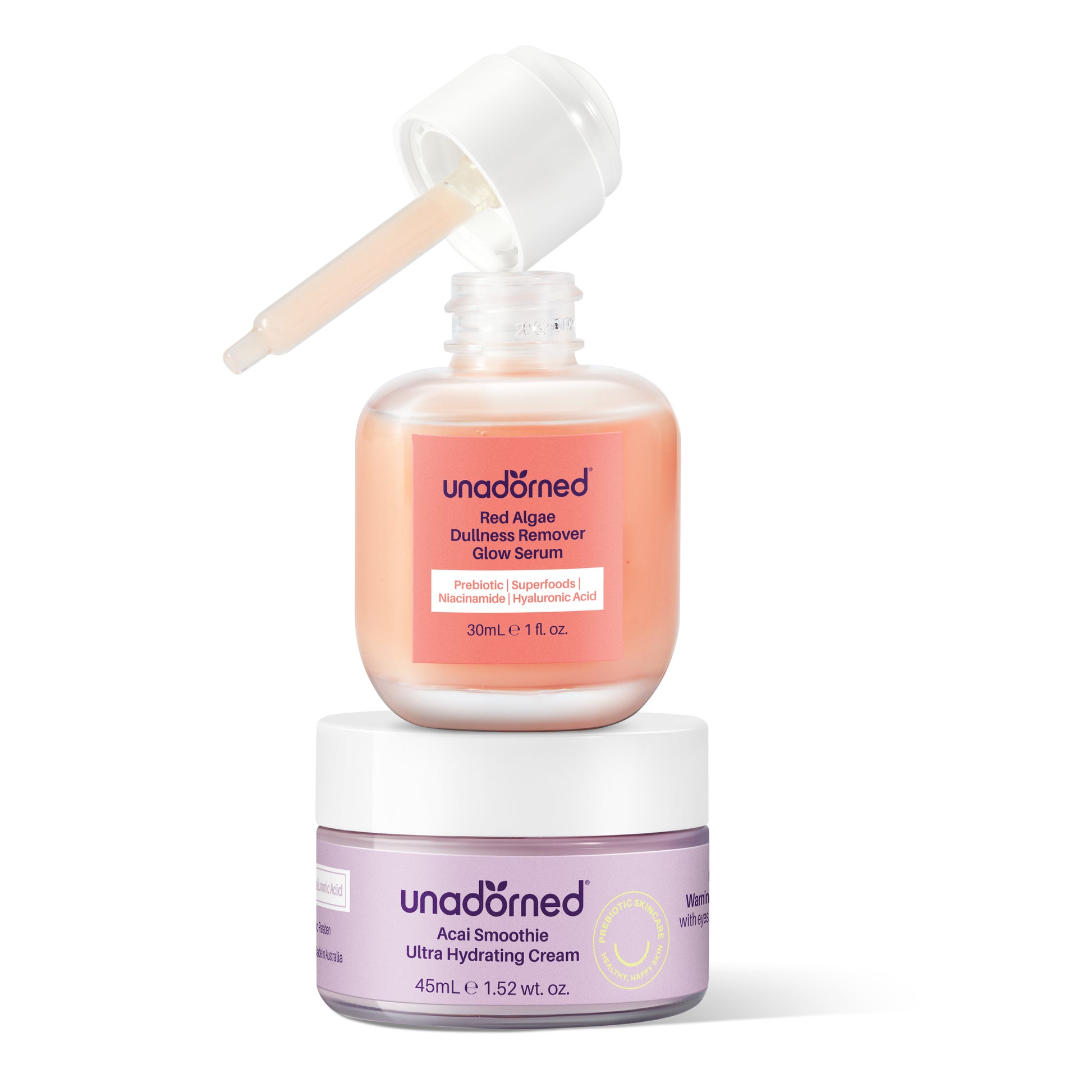 Your skin’s daily superfood boost. This powerhouse pair — Red Algae Dullness Remover Serum and Açai Smoothie Ultra Hydrating Cream — delivers intensive nourishment to hydrate, brighten, and support your skin's microbiome to help restore and strengthen the barrier-so your glow stays fresh, all day, every day.